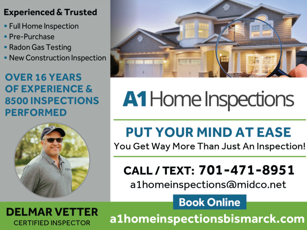 A1 Home Inspections has over 16 years of experience providing reliable and thorough home inspections in Bismarck, ND. With more than 8,000 inspections completed, our licensed team delivers accurate, easy-to-understand reports that help clients make informed decisions when buying or selling a home.